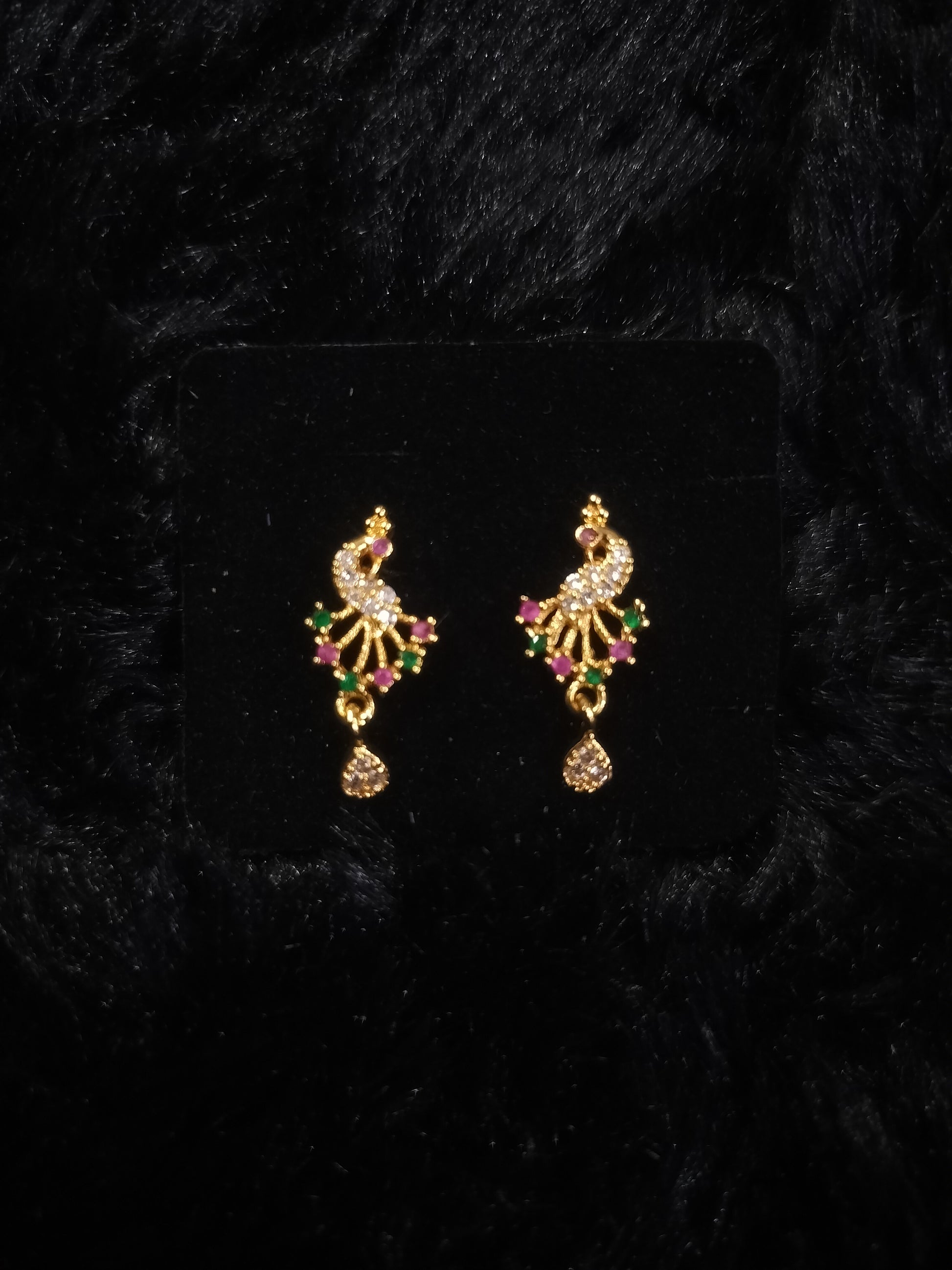 GOLD COVERING EARRING RUBY STONE