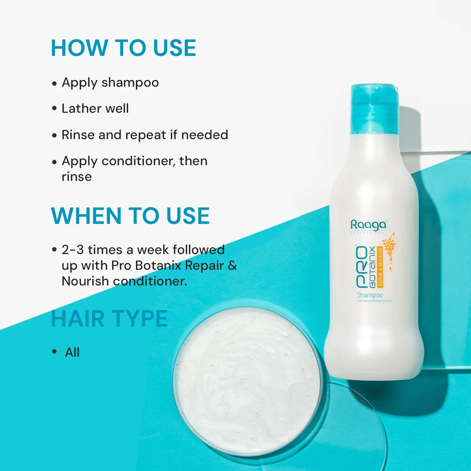 Raaga Professional Pro Botanix Repair and Nourish Shampoo with Wheat Protein (200 ml) Repairs and Nourishes Dry and Damaged Hair | Suitable For Men & Women